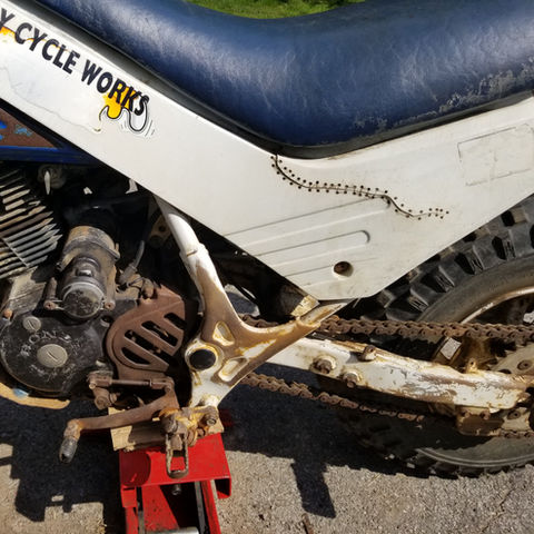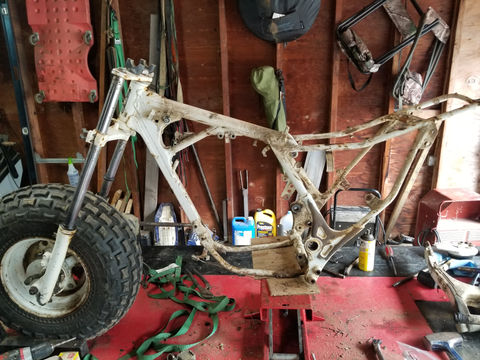 This is the visual history of the restoration I did for a customer. Every nut and bolt was removed from the machine and cleaned up or painted. The exhaust was welded, new tires, plastics, cables, brakes, and a handful of other parts replaced. All the metal was painted. The customer was ecstatic with the outcome!